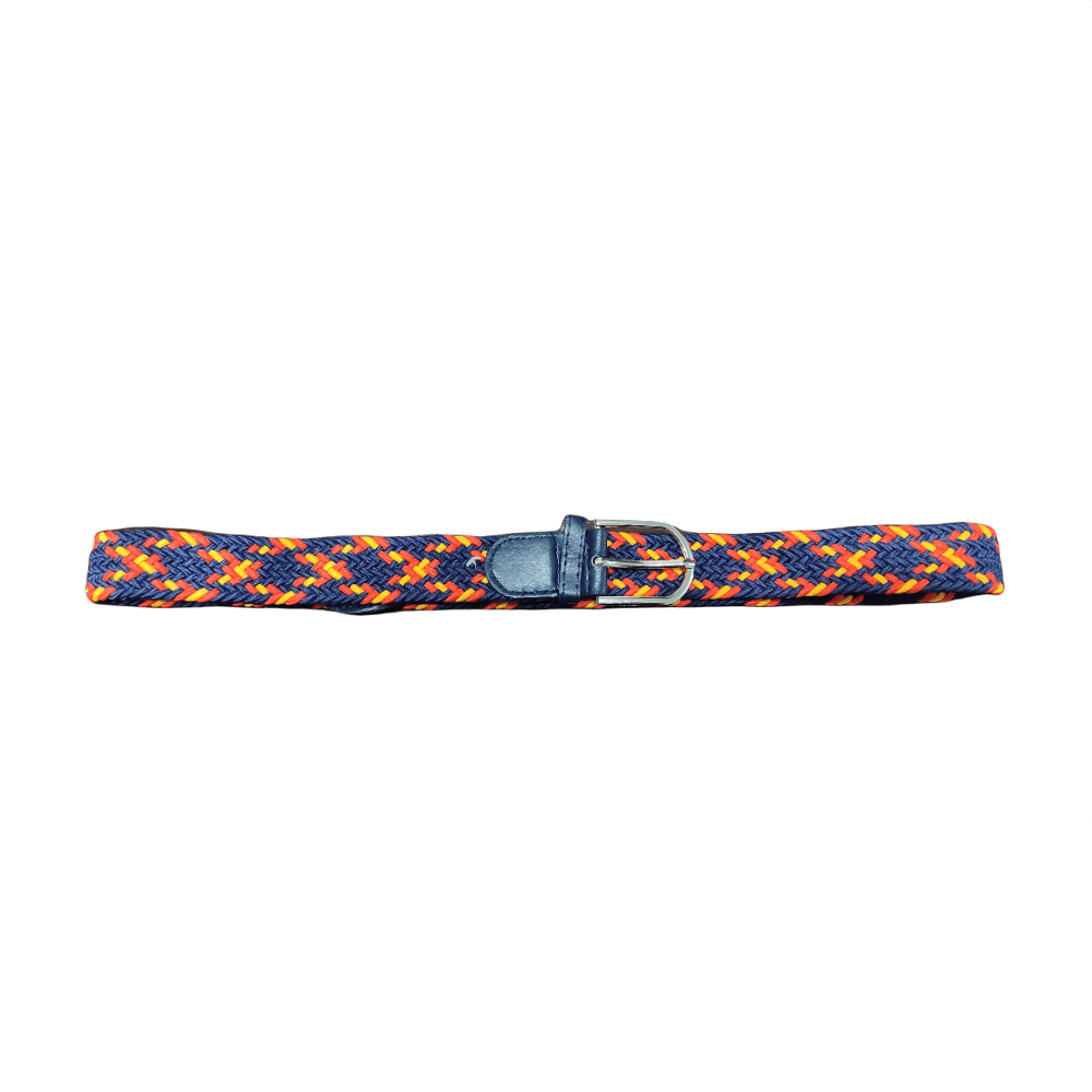 Cinturón trenzado elástico azul marino con la bandera de España.